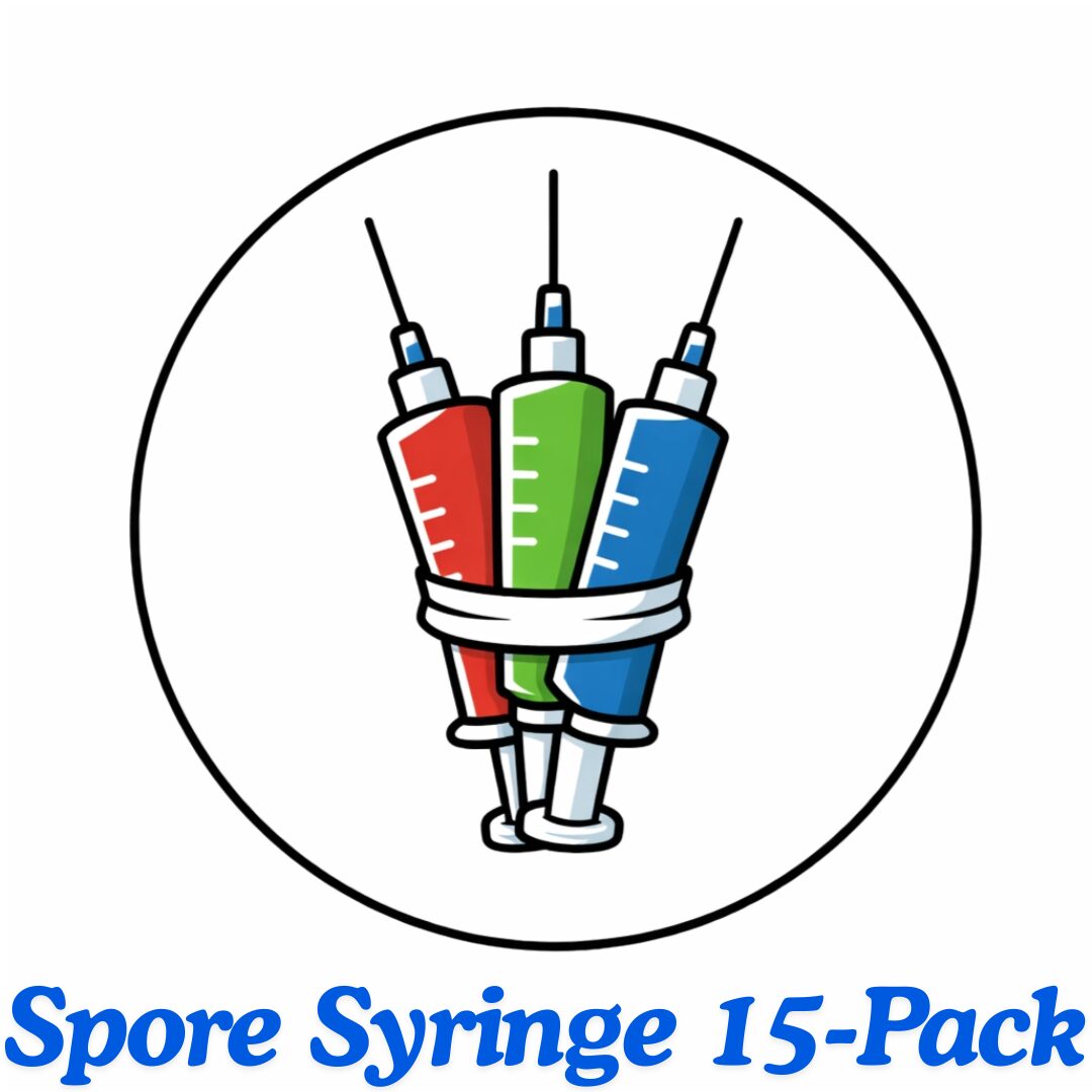 You choose! Mix-n-match 15 different spore syringes from the choices listed below and put your choices in the order notes at the checkout. If you don’t pick, you will receive house choices.